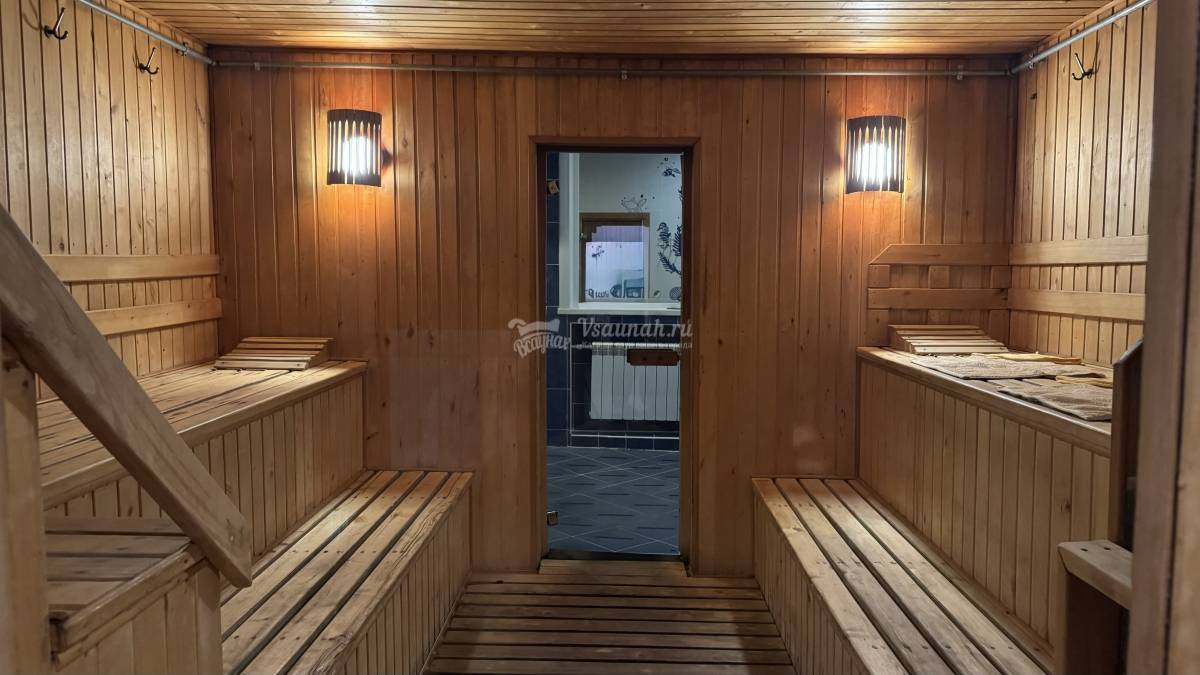 Были в этой сауне, в большой комнате. Реально одни плюсы! Места очень много. И парилочка хорошаяи вместительна (можно на помостки усесться впятером легко). Душевая тоже большая. Классно то,что в ней есть кадка для обливания–вода набралась в кадку, пошёл париться, вышел, встал под кадку, потянул за верёвку и вся кайфовая вода хлынула на тебя, КАААЙФ!!! Но выше всех похвал, лично от меня конечно, это бассейн. Вода не холодная, а это классно. Вода прозрачная, чистая, хлоркой не воняет.