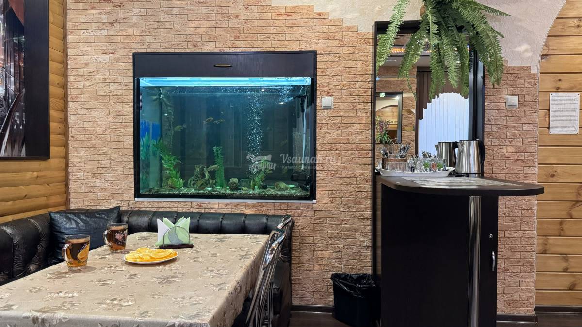 отдыхали с друзьями в клуб- сауне, все очень . Доброжелательный персонал, кругом чистота, что немаловажно для отдыха с детьми( там даже не курят) . Очень интересный интерьер, огромный аквариум с красивыми рыбками, просторная парилка, хамам, ведро с ледяной водой, бассейн с гейзером и джакузи с пеной. Шикарно, замечательно и недорого. Получили полный релакс, спасибо.